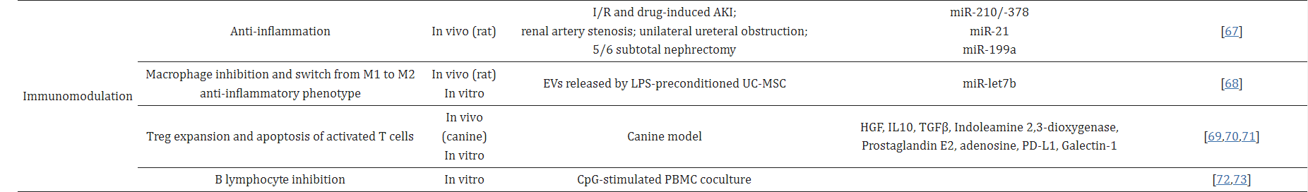 在幾種腎臟疾病的情況下,特別是在AKI中,SCs和相關的EVs具有多種積極特性。這些有益作用可分為三類:細胞保護、再生和免疫調節。