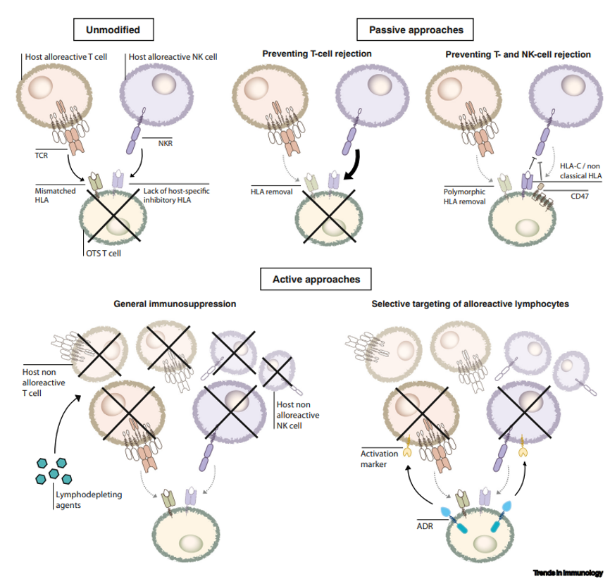 ▲ 主動的方法可以通過非選擇性抑制宿主免疫(清除宿主淋巴細胞,包括 CD52/CD38 單克隆抗體和 FOLFOX);