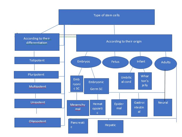 干細(xì)胞是未分化的細(xì)胞,在某些情況下可以分化成所有類(lèi)型的細(xì)胞。這使它們最終能夠再生受損組織并恢復(fù)身體的功能[4]它們可以按不同的方式分類(lèi)(圖1)。