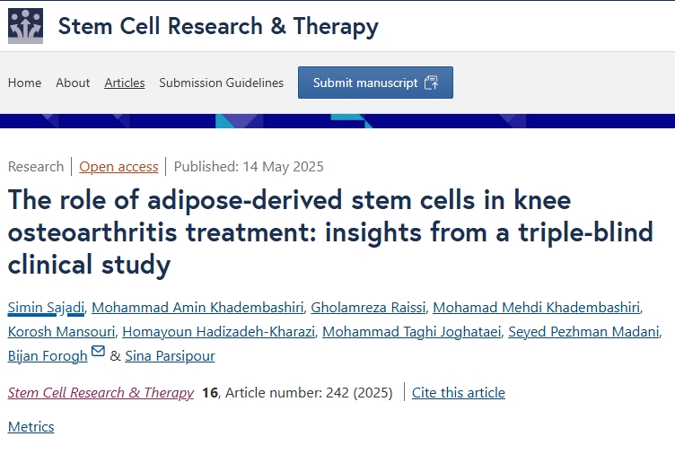 參考資料:[1]:Sajadi, S., Khadembashiri, M.A., Raissi, G.?et al.?The role of adipose-derived stem cells in knee osteoarthritis treatment: insights from a triple-blind clinical study.?Stem Cell Res Ther?16, 242 (2025). https://doi.org/10.1186/s13287-025-04233-5