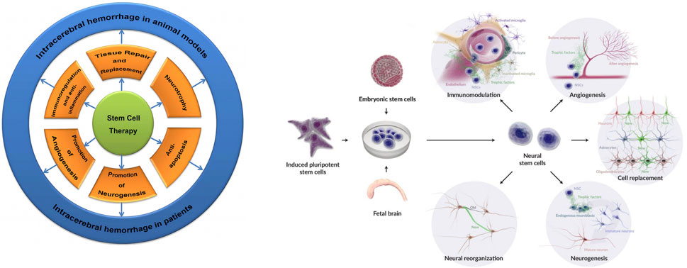 NSC 移植能降低炎癥、減少凋亡、促進血管再生與神經發生,并在行為學評分上改善功能(時間窗、劑量與模型類型影響顯著)。
