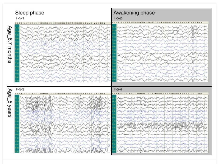 移植前6個月時EEC即出現腦功能影響,表現為睡眠期及覺醒期彌漫性慢波增多,5歲時EEG恢復正常(圖5)。