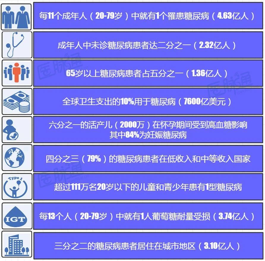 國(guó)際糖尿病聯(lián)合會(huì)發(fā)布第9版的《全球糖尿病地圖 (IDF Diabetes Atlas)》,對(duì)全球糖尿病的當(dāng)前形勢(shì)以及未來(lái)的發(fā)展趨勢(shì)進(jìn)行了系統(tǒng)的分析與預(yù)測(cè)。目前全球范圍內(nèi)估計(jì)在20歲~79歲人群中有4.63億人患有糖尿病,絕大多數(shù)為II型糖尿病。
