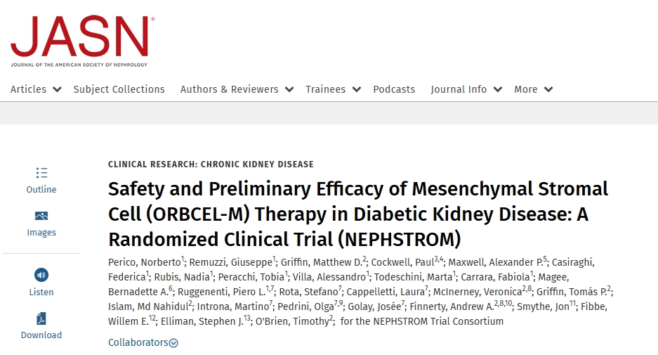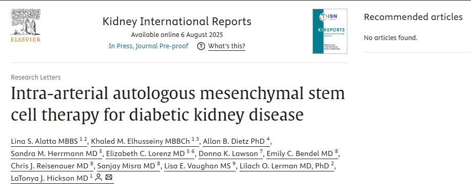 近日,美國梅奧診所在國際權威期刊雜志《腎臟國際報告》上發表了一項關于“動脈內自體間充質干細胞治療糖尿病腎病”臨床研究的文章[1]。
