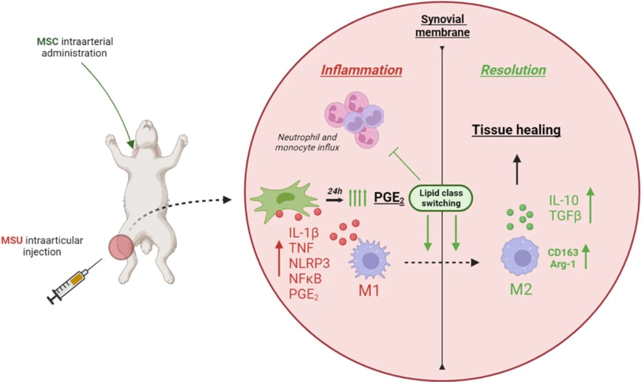一項發表在《Molecular Innate Immunity》的研究,由馬德里自治大學的Juan Pablo Medina團隊完成,揭示了脂肪來源的干細胞(Ad-MSCs)在動物模型中對痛風關節炎的顯著治療效果。這些干細胞不僅能顯著減輕關節炎癥和疼痛,還能調整巨噬細胞的功能,將其從促炎型轉變為抗炎型。