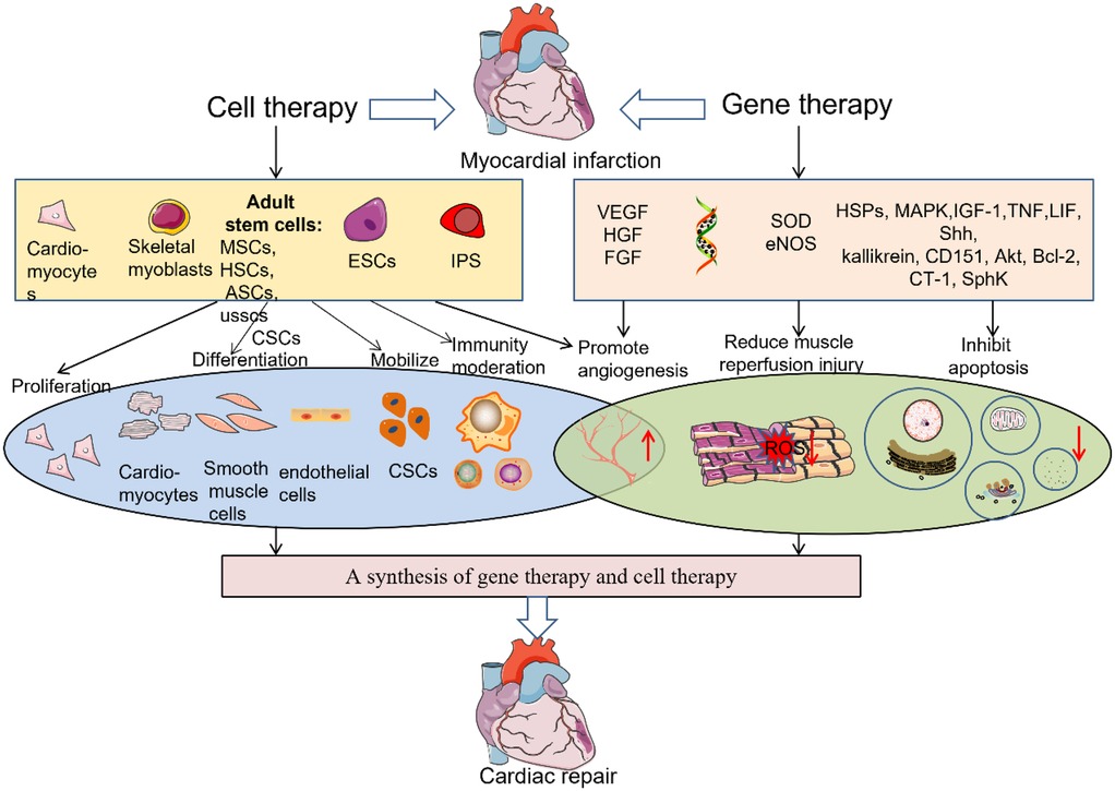 近日,天津中醫藥大學第一附屬醫院醫學實驗中心在期刊雜志《心血管醫學前沿》發表了一篇有關“治療心肌梗死的兩種有希望的方法:干細胞和基因治療”的文章[1],該文章主要內容是探討干細胞和基因技術在心肌梗死(MI)治療中的應用。結果表明:干細胞和基因療法代表了治療心肌梗塞的變革性方法,為改善心臟功能和降低發病率帶來了希望。