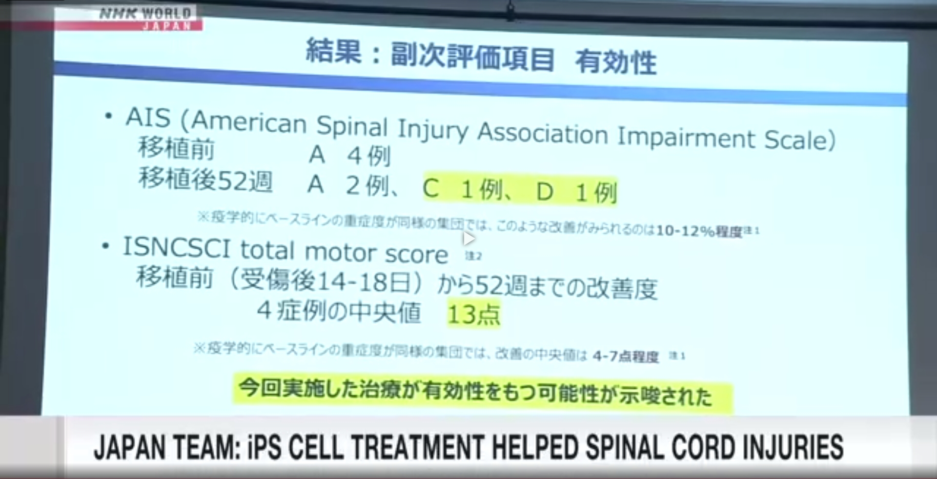 岡野表示:“我們在世界上首次利用iPS細胞(轉換為神經干細胞)治療脊髓損傷方面取得了成果。”