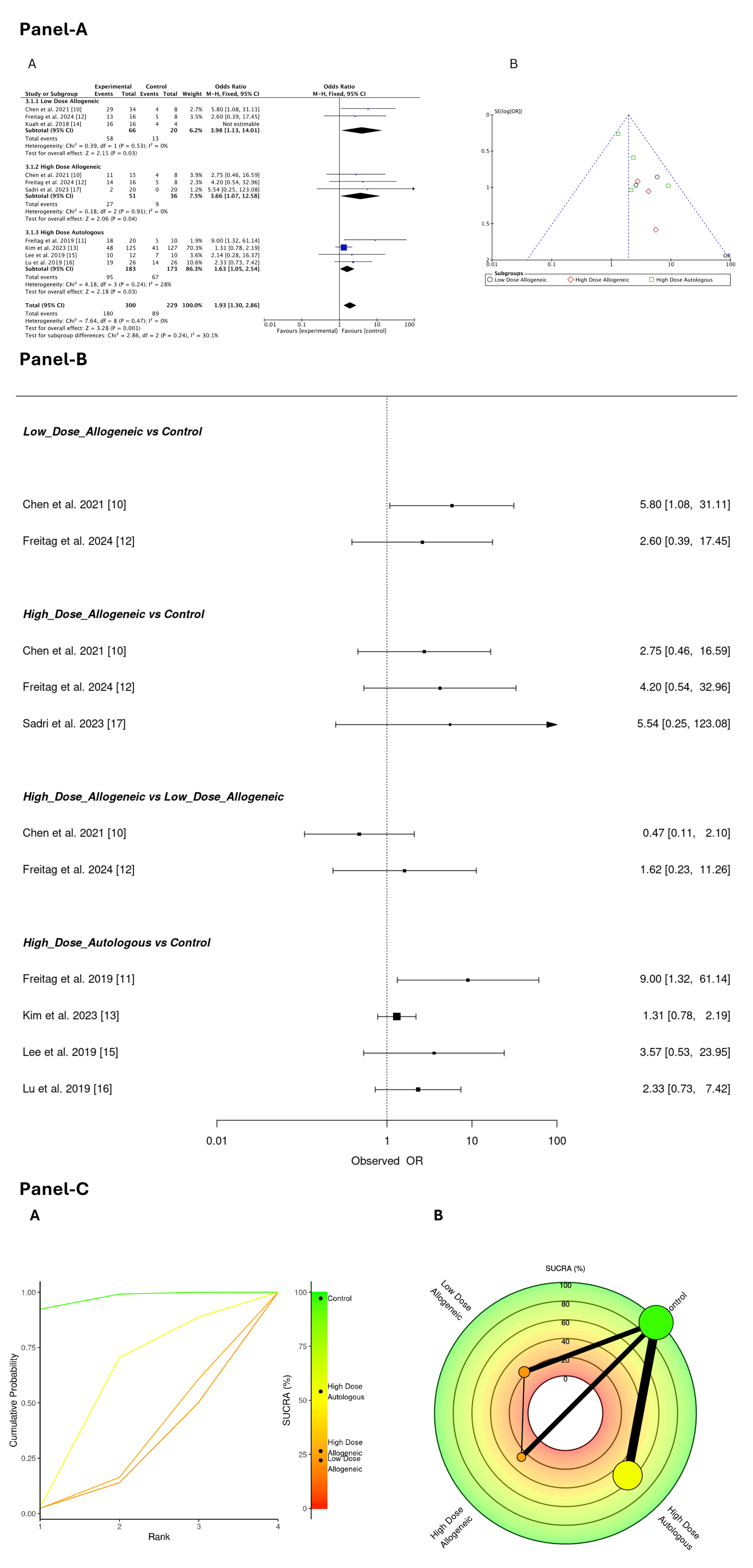 一、傳統薈萃分析:高劑量異基因 AD-MSCs 早期功能改善領先,低劑量組效果不顯著