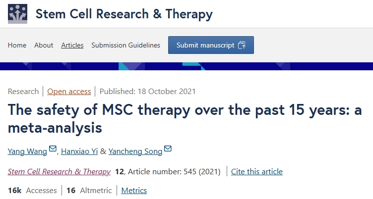 例如,2021年,期刊雜志“Stem Cell Research&Therapy”發(fā)表了一篇“過去15年MSC治療的安全性:薈萃分析”的文獻綜述。