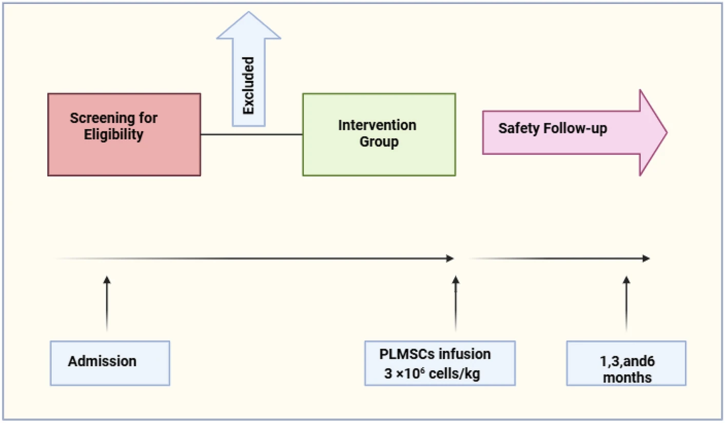 本研究項(xiàng)目(包括胎盤捐贈(zèng)和PLMSCs制備過程)已獲得“德黑蘭醫(yī)科大學(xué)”教育、文化和研究倫理委員會(huì)的批準(zhǔn)。圖1展示了臨床試驗(yàn)的設(shè)計(jì)和患者流程。