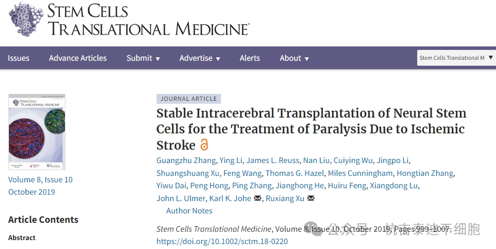 結果表明:9例慢性中風患者接受NSI-566腦內移植后,偏癱癥狀明顯改善,影像學顯示損傷區有新神經組織生成,24個月隨訪無嚴重不良反應。