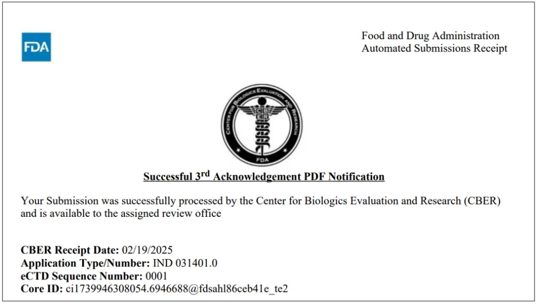 2025年02月19日,上海賽爾欣生物醫療科技有限公司(以下簡稱“賽爾欣生物”)迎來了重大喜訊:其自主研發的NP001(Treg)項目正式獲得美國食品藥品監督管理局(FDA)關于新藥臨床試驗申請(IND)的受理(Application Type/Number: IND 031401.0)。