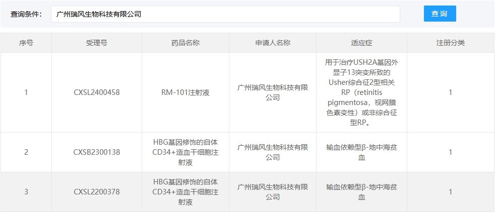新增受理8:2025年4月15號,廣州瑞風生物科技有限公司的HBG基因修飾的自體CD34+造血干細胞注射液的臨床試驗申請獲受理(受理號:CXSB2500048)。適應癥:輸血依賴型β-地中海貧血。