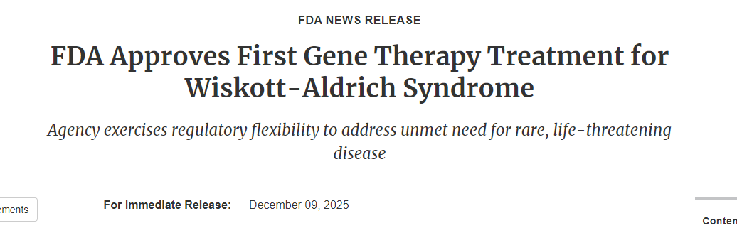 [3]https://www.fda.gov/news-events/press-announcements/fda-approves-first-gene-therapy-treatment-wiskott-aldrich-syndrome?utm_source=chatgpt.com