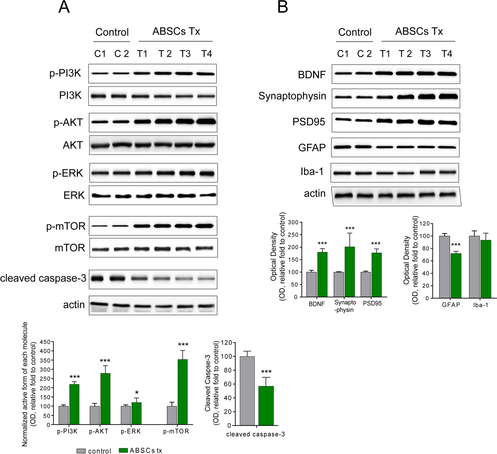 本研究提出以下假設:ABSCs與生長因子聯(lián)合應用可通過激活PI3K/Akt和MAPK/ERK等關鍵信號通路,促進神經元存活、增強突觸可塑性,從而改善認知功能并延緩疾病進展。同時,研究也全面評估了該療法在臨床應用中可能遇到的不良事件、免疫反應及其他潛在風險,以驗證其安全性與可行性。