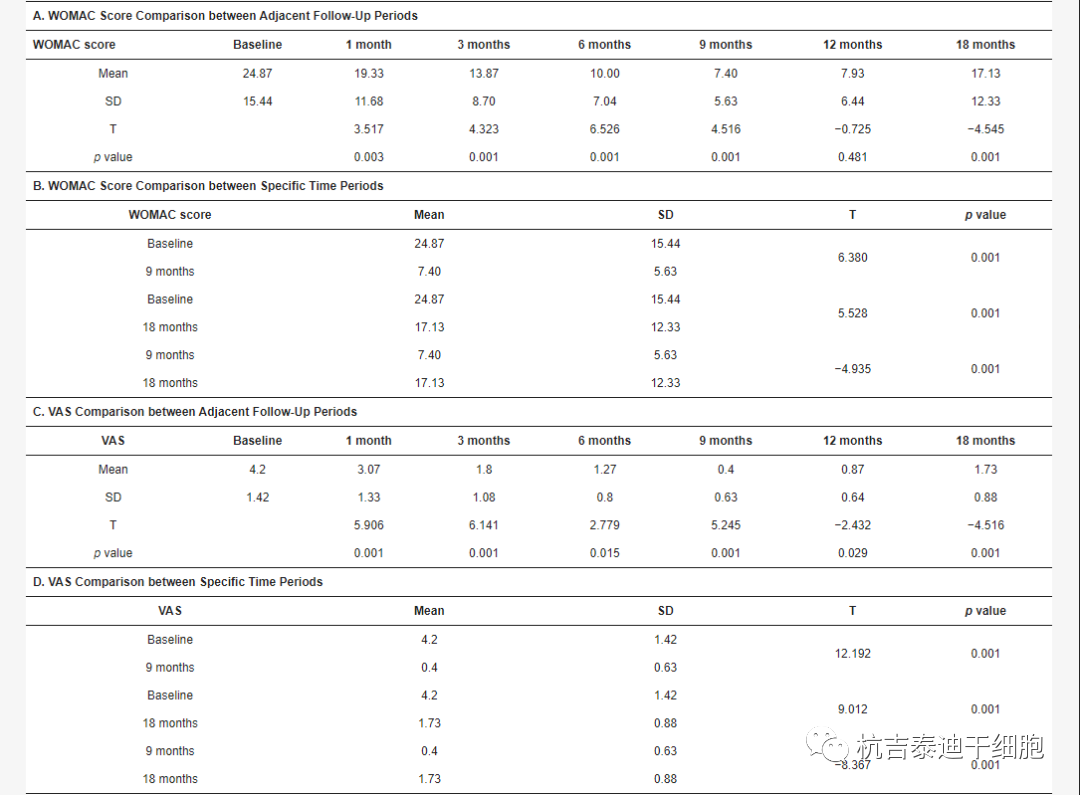 該研究最重要的發現是膝關節OA患者單次關節內注射MF-AT可獲得令人滿意的臨床結果和功能改善,在18個月的隨訪中沒有發生不良事件,患者表現最好注射后9個月膝關節功能改善。