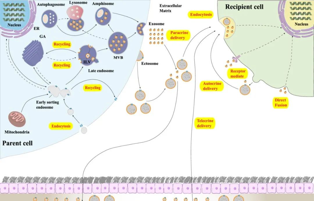 但由于潛在成瘤風(fēng)險(xiǎn)、容易導(dǎo)致免疫反應(yīng)、作用時(shí)間短、胚胎倫理問題等原因,神經(jīng)干細(xì)胞的臨床應(yīng)用仍然受到很大的限制,因此越來越多的科學(xué)家將目光轉(zhuǎn)向了NSC-EVs。