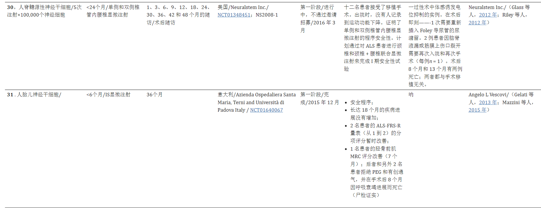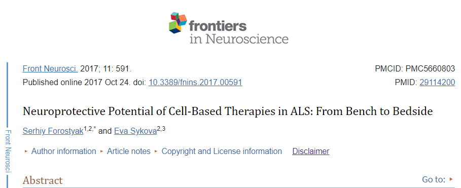 主要參考資料:Forostyak S, Sykova E. Neuroprotective Potential of Cell-Based Therapies in ALS: From Bench to Bedside. Front Neurosci. 2017 Oct 24;11:591. doi: 10.3389/fnins.2017.00591. PMID: 29114200; PMCID: PMC5660803.