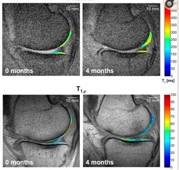 該研究小組對55例部分關(guān)節(jié)切除患者進(jìn)行關(guān)節(jié)腔內(nèi)注射MSCs的研究,實(shí)驗(yàn)組患者注射同種異體MSCs,對照組患者注射透明質(zhì)酸鈉。通過VAS及 self-Lysholm 評估,結(jié)果顯示損傷癥狀得到緩解,1年MRI的追蹤檢測證實(shí)經(jīng)過MSCs治療的患者半月板體積顯著增加。