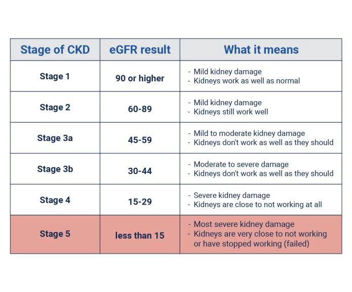 每個(gè)階段都基于eGFR數(shù)值,并有不同的癥狀和治療方法。