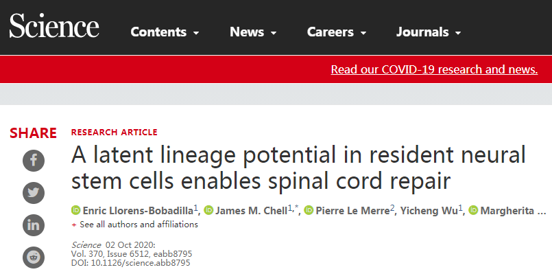 2020年,瑞典Karolinska研究所在《科學》雜志上發表的一項新研究顯示干細胞可以幫助損傷后的脊髓修復[1],證明了刺激小鼠脊髓中干細胞形成大量新的、神經元傳遞信號所必須的少突膠質細胞,可以幫助修復受傷后的脊髓。