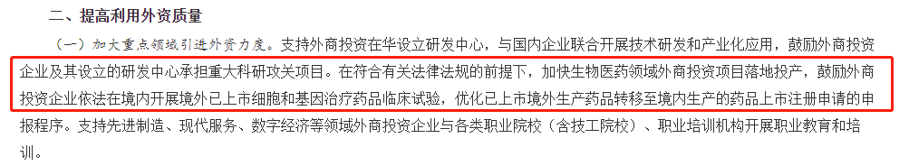 此次國務院發(fā)布的新意見中,鼓勵外資企業(yè)依法在境內(nèi)開展境外已上市的細胞和基因治療藥品臨床試驗,不知道這是否算對上面負面清單的一種松動?