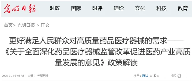 2025年1月3日,國務院辦公廳發布了《關于全面深化藥品醫療器械監管改革促進醫藥產業高質量發展的意見》(國辦發〔2024〕53號)。國家藥監局相關負責人表示,意見的出臺將深化藥品醫療器械監管全過程改革,加快構建全國統一大市場,打造全球競爭力的創新生態,助力我國從制藥大國向制藥強國跨越。